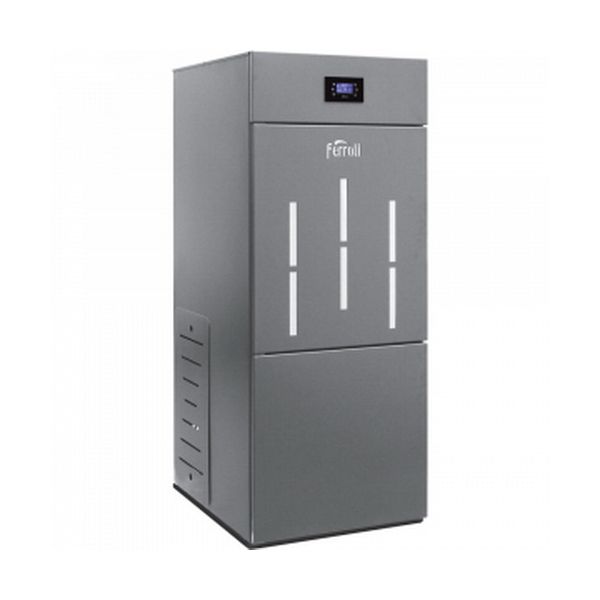 Cazan din otel pe peleti Ferroli BioPellet Pro 30 - 30 kW Putere maxima/minima : 30 / 9.3 kWConsum mediu de peleti: 3.9 kg/hRandament (nominal/redus) : 93 / 96 %Temperatura medie a gazelor de ardere : 147 / 71 ºCTiraj minim necesar : 12 Pa. Conducta gaze arse: Φ80 mmConducta aer proaspat: Φ60 mmConsum electric min/max : 60/310 WAlimentare curent electric : 230 V, 50 Hz.Distante minime siguranta: Spate 500 mm; Lateral 600 mm; Fata 1000 mmTip combustibil Peleti: Φ6-Φ8 mm.Capacitate vas expansiune: 8 litriRacord tur (filet exterior): 1“. Racord retur (filet interior): 1“Functionare la temperaturi mediu inconjurator: 5-40ºC.Temperatura maxima a apei 90ºC. Umiditate la 30º С a mediului inconjurator: 85%.Volum apa cazan: 65 litri.Presiune recomandata de lucru: 2 Bar.Dimensiuni H(max) x L(max) x A(max): 1650 x 700 x 790 mm.Volum buncar : 105 kgGreutate : 310 kg BioPellet PRO este unul dintre cele mai eficiente cazane pentru incalzire centrala care foloseste arderea automatizata a peletilor. Principiul de functionare al acestui cazan se bazeaza pe utilizarea camerei de ardere in depresiune, aceasta fiind complet etansa astfel incat fluxul de aer este controlat de ventilatorul de evacuare, montat pe partea din spate a cazanului. Controlul arderii este optimizat folosind un algoritm de modulare, care scade automat dozarea peletilor si a aerului pe masura ce cazanul se apropie de temperatura dorita.Ferroli BioPellet Pro 30 este un cazan din otel pentru incalzire centrala care foloseste arderea automatizata a peletilor. Cazanul este destinat pentru incalzirea de spatii de locuit sau publice, folosind peleti. Ferroli Biopellet Pro este dotat cu schimbator de caldura din otel destinat pentru sisteme de incalzire cu temperatura agentului pana la 90ºC si presiune maxima de 2,5 bar si are automatizare Tiemme cu ecran tactil (touchscreen). Avantaje:- Randament ridicat de pana la 94% - temperatura gazelor de ardere sub 160°C- Ventilator evacuare – asigura debitul de aer necesar arderii si evacuarea gazelor de ardere- Nivel scazut de NOx conform Normelor Europene EN 303-5 (teste efectuate la Institutul Kiwa din Treviso - Italia)- Aprindere/ Pornire/ Oprire cazan complet automatizate- Functionare eficienta – arzator modulant si camera de ardere etansa cu debitul aerului de ardere controlat de un ventilator- Dimensiuni compacte – cazanul se poate transporta si monta usor datorita dimensiunilor reduse (rezervor de peleti montat deasupra)- Ardere eficienta - curatare si intretinere simplificate fata de cazanele clasice pe combustibil solid - Pompa de circulatie incalzire - incorporata in cazan. Cazanul este proiectat si fabricat pentru a functiona numai cu peleti clasa A (DIN plus 51731) cu urmatoarele caracteristici: Material 100% lemn rasinos sau foios; Diametru Ф 6/8 mm; Lungime 20-30 mm; Valoare calorific >4.8 kW/kg; Continut de cenusa < 8%; Folosirea de peleti cu alte caracteristici decat cele recomandate poate duce la reducerea puterii, functionare instabila si neregulata. Cazanul trebuie racordat la un cos de fum cu un tiraj corespunzator. Cazan din otel pe peleti Ferroli BioPellet Pro - componenteCazan din otel pe peleti Ferroli BioPellet Pro - instalare cos de fum