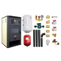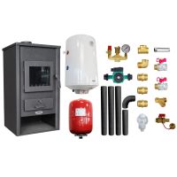 Pachet Termosemineu pe lemne, brichete si carbune Fornello B2E, 14 kW, 46x45x91 cm, boiler termoelectric 80l, vas expansiune, pompa circulatie, kit evacuare si kit montaj